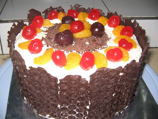 Ternyata Aan pesan 1 cake lagi untuk ultahnya. Buat dibagi-bagi ke teman-teman kuliahnya. Aan ultah tanggal 14 Mei tapi cake-nya untuk dibawa hari selasa pagi. Ups...siap-siap lembur lagi nih. Hari Senin itu istri Alip nggak bisa bantuin. Jadi aku bikin sendiri.Kali ini aku bikin black forrest yang biasa aku bikin. Belanja bahan-bahan aku nitip beliin suami. Sore baru bisa mulai nge-mix setelah Rafi bobo. Sebelumnya udah nyicil timbang-timbang bahan, potong kertas roti untuk alas, dsb